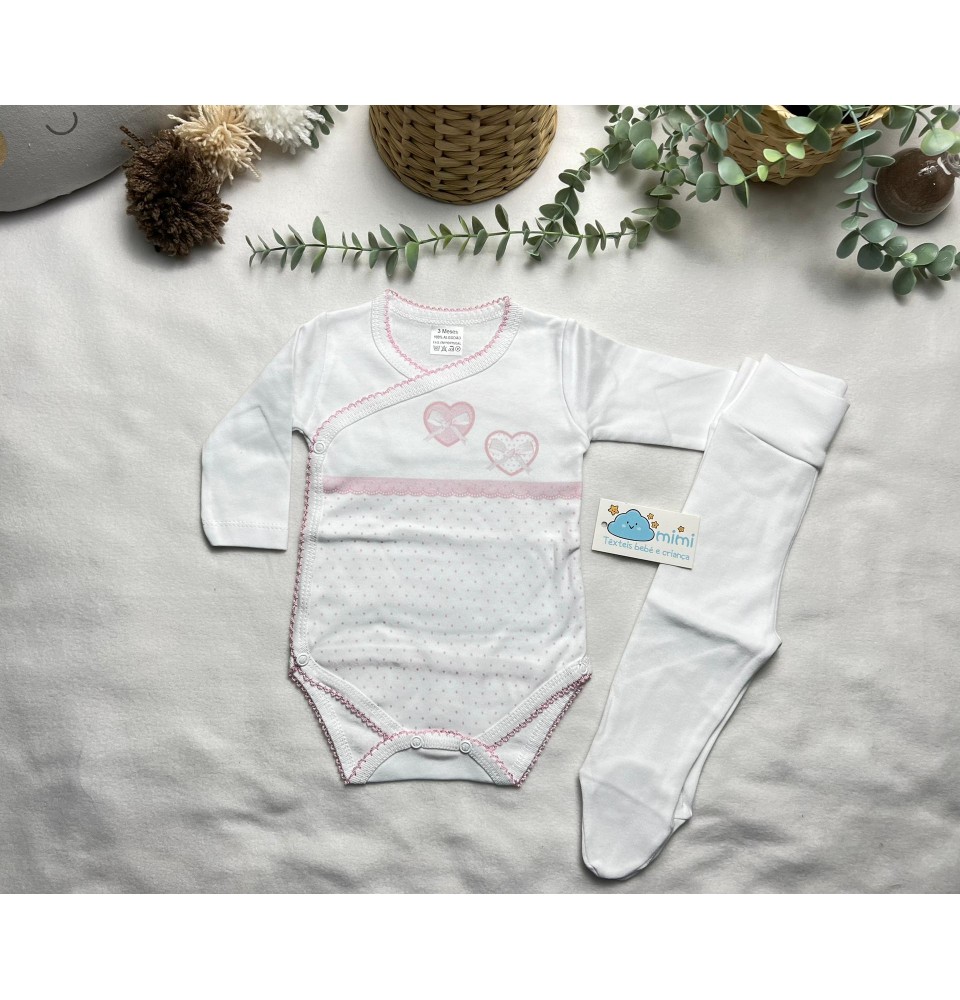 Body + Collant 2 Corações Rosa