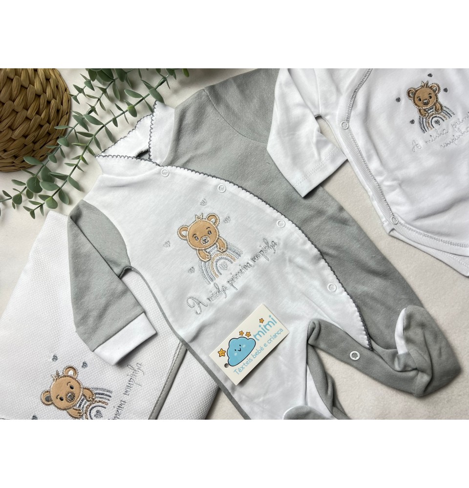 Kit 1ª Roupinha Arco íris Cinza