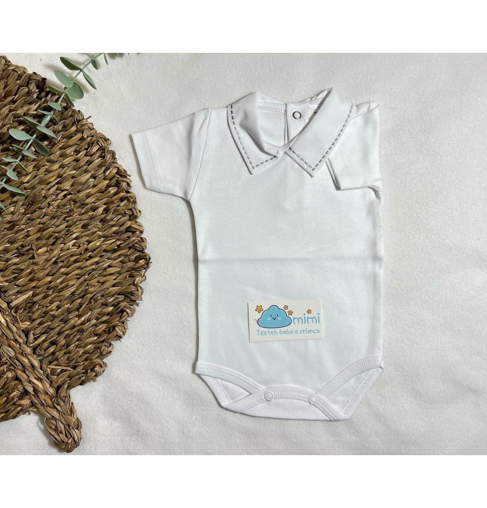 Body Manga Curta Golinha em Bico Cinza