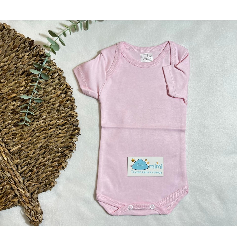 Body Manga Curta Simples Rosa